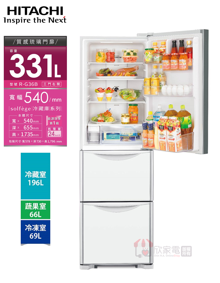 公升數(L):331 (冷藏196L/蔬果66L/冷凍69L )