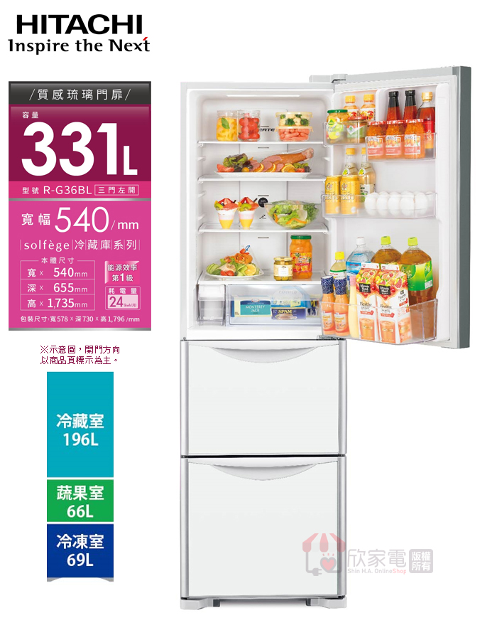 公升數(L):331 (冷藏196L/蔬果66L/冷凍69L )
