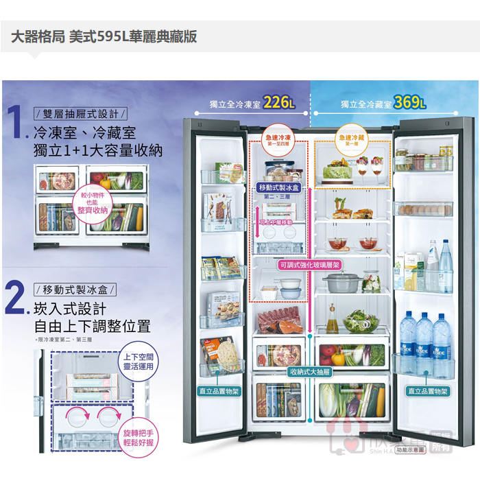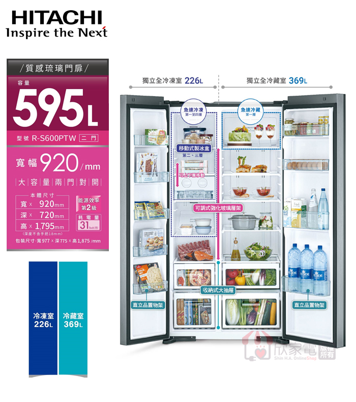 HITACHI 日立 595公升 變頻琉璃對開冰箱