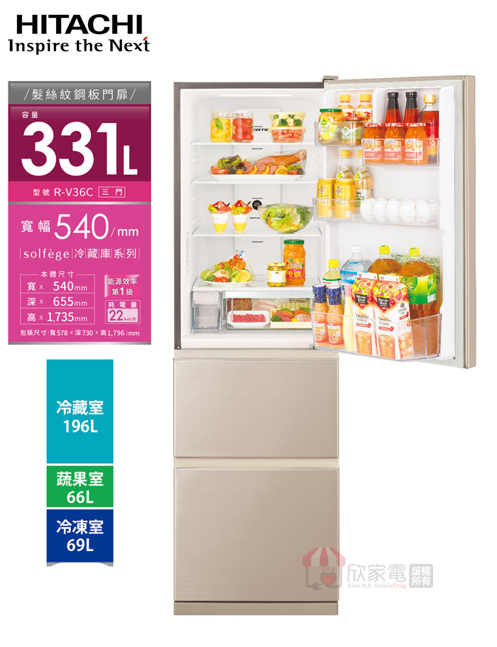 公升數(L):331 (冷藏196L/蔬果66L/冷凍69L )