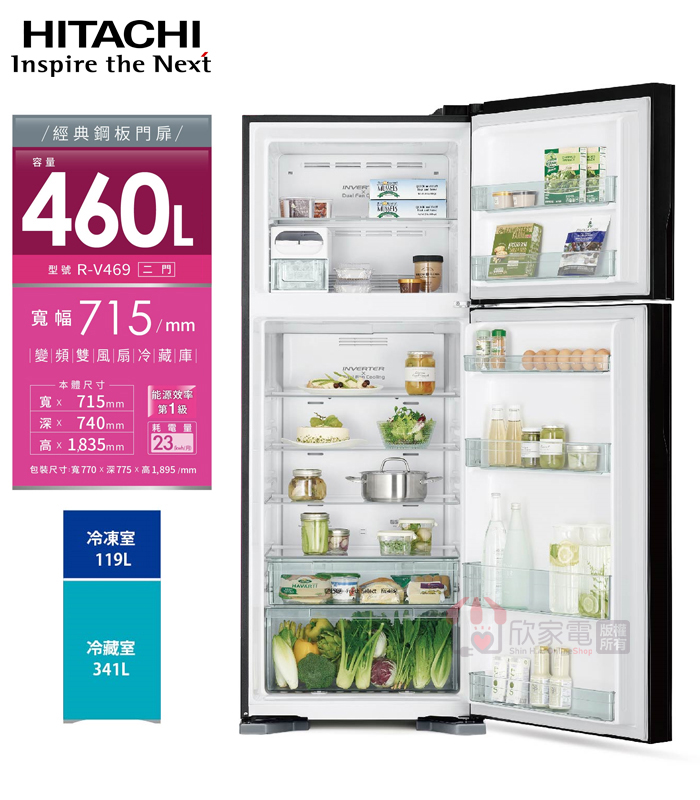 公升數(L):460 (冷凍119L/冷藏341L )