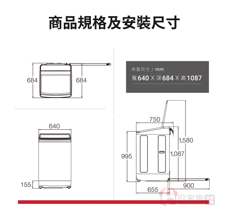 外型尺寸(mm):寬640 × 深684 × 高1087