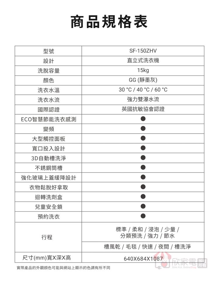 外型尺寸(mm):寬640 × 深684 × 高1087