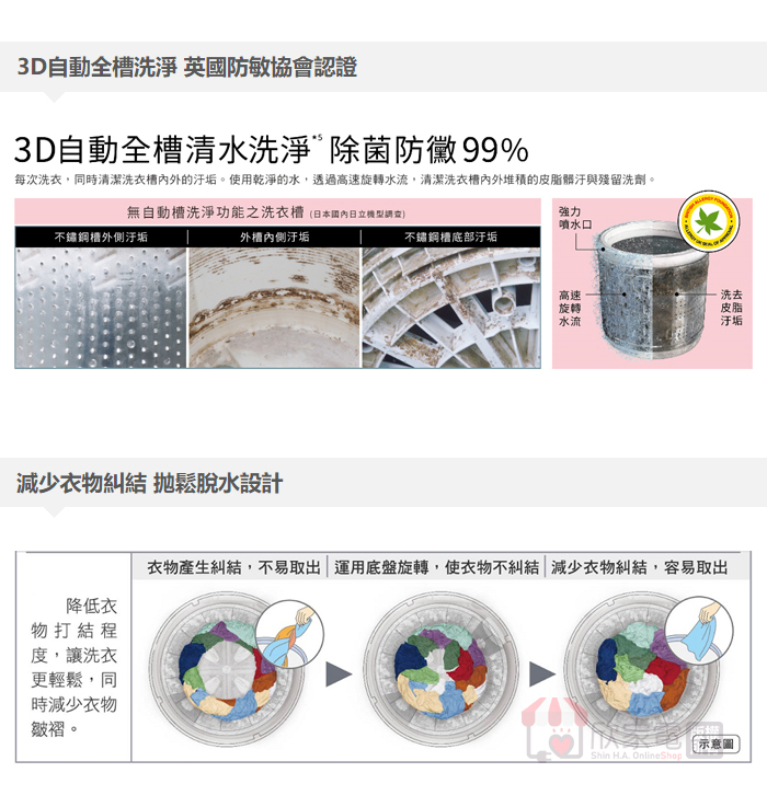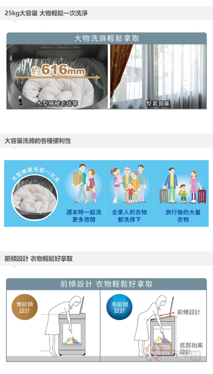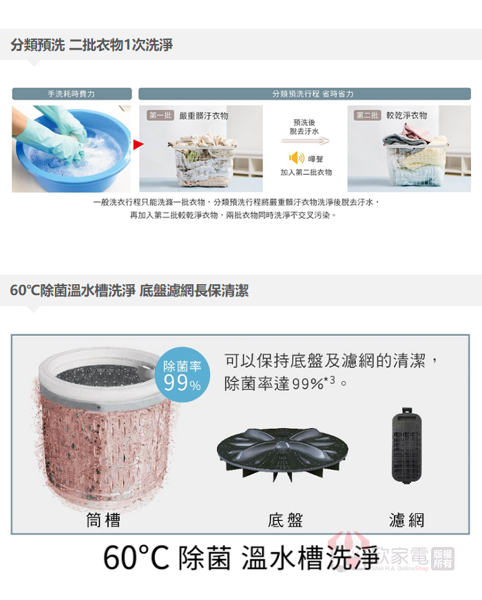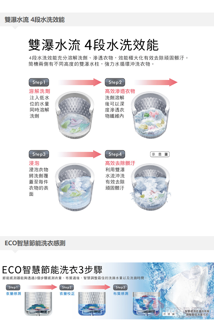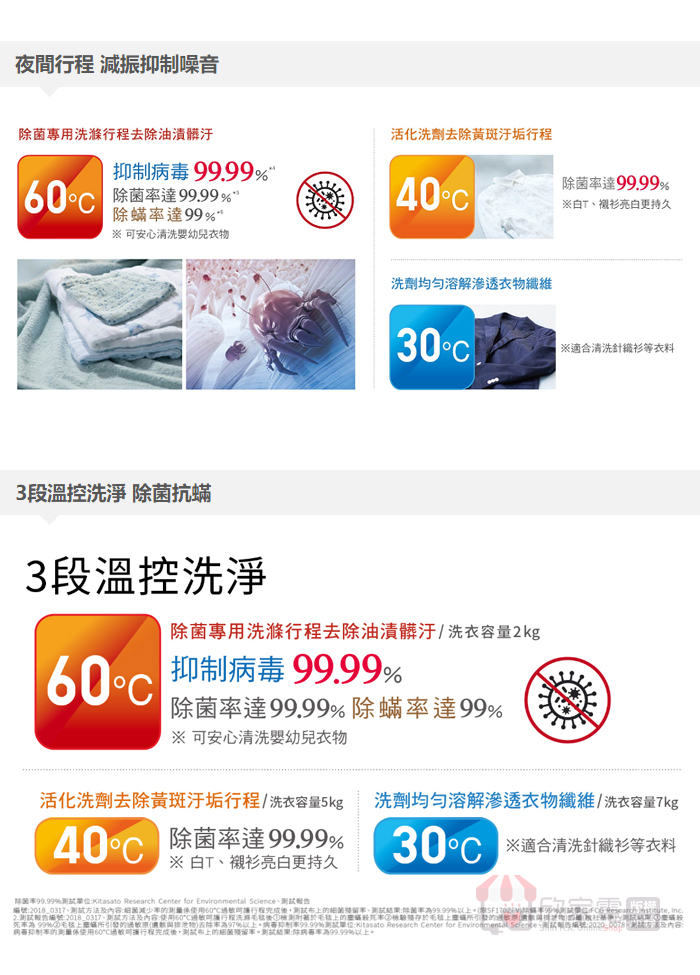 飛瀑水流、溫水洗衣(30/40/60℃)、毛毯大物行程