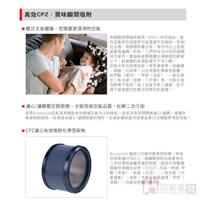 Honeywell CPZ 異味吸附劑 原廠公司貨
