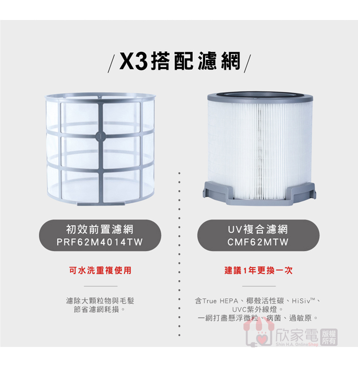 ※貼心提醒:此耗材適用於「X620S(X3) 空氣清淨機」購買前請先確認您的機型!