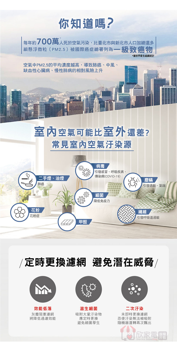 ※請使用原廠濾網,以確保最佳空氣清淨品質及機器壽命與安全,有保障又安心。
