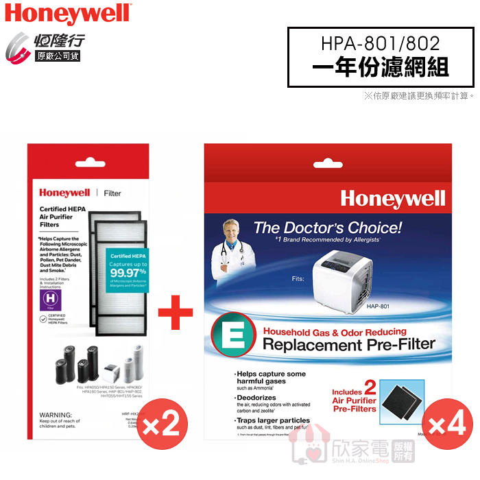 Honeywell HAP-801APTW/HAP-802WTW【一年份】原廠濾網組