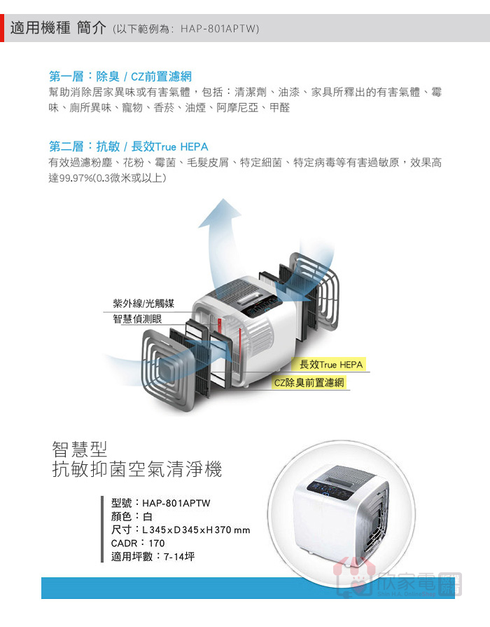 適用機型:HAP-801WTW、HAP-802WTW、HPA-162WTW、HHT-155