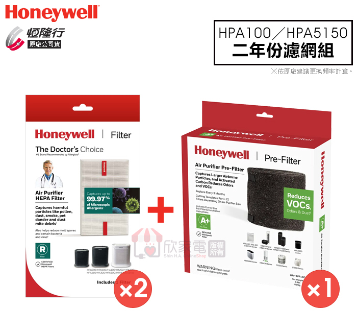 Honeywell HPA100/HPA5150【二年份】原廠濾網組