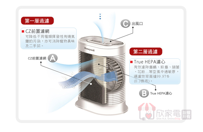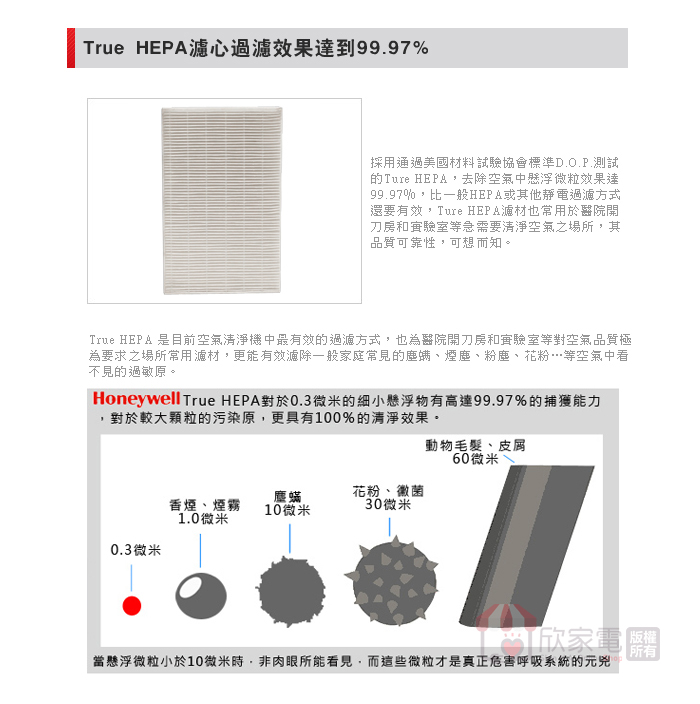 商品名稱:Honeywell 原廠 True HEPA濾網