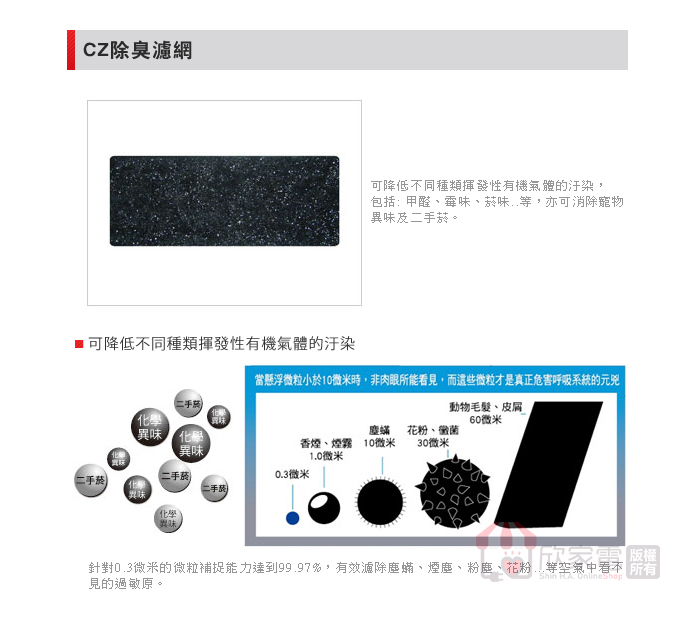 商品名稱:Honeywell 原廠 CZ 除臭濾網