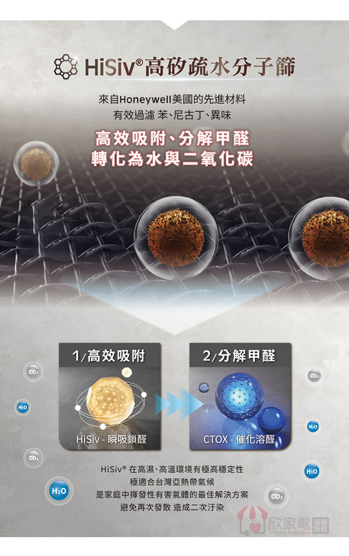 純淨1. —專利Hisiv成分,有效分解甲醛等有害氣體