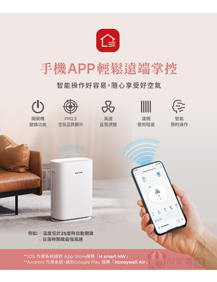 功能:燈光控制、濾網更換指示、WiFi APP聯網