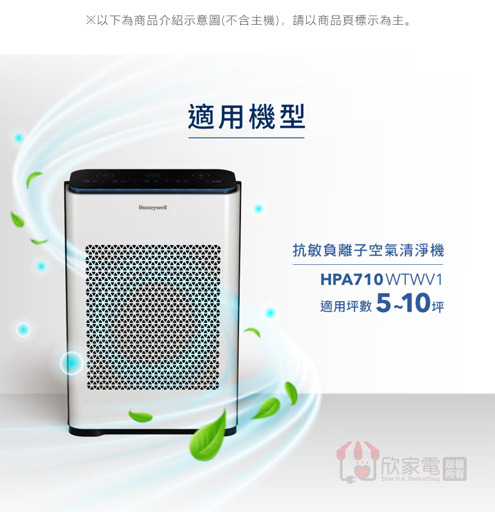 適用機型:Honeywell 智慧淨化抗敏空氣清淨機 HPA710WTW