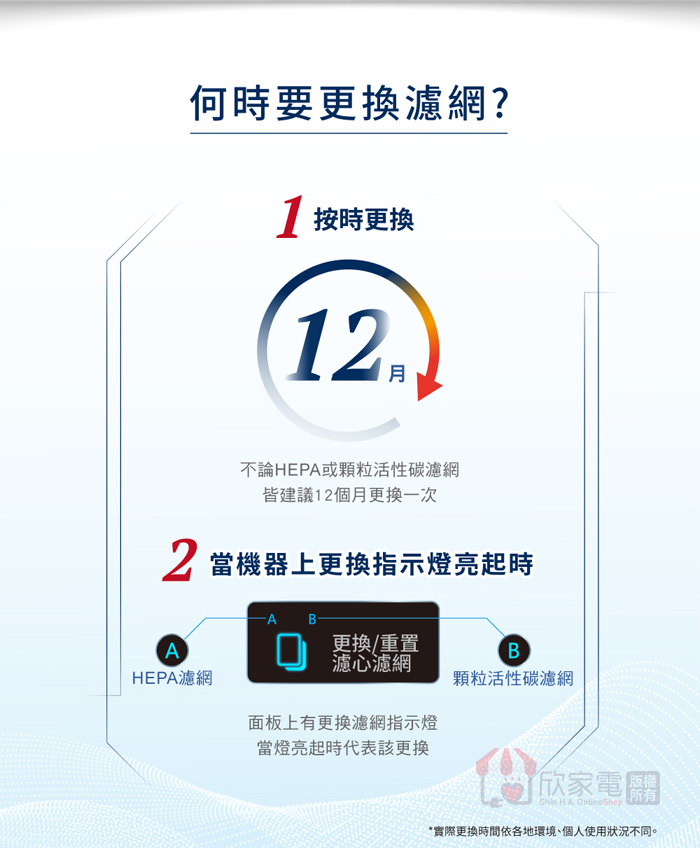 建議更換頻率:約12個月,視個人使用情況不同而定