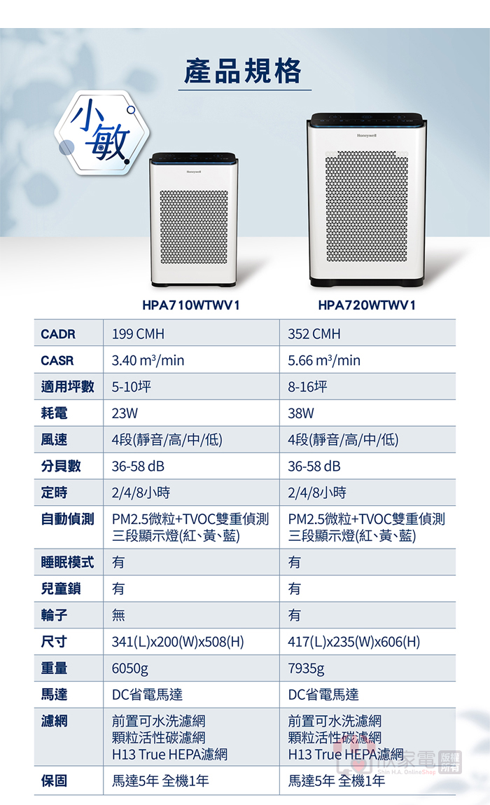 Honeywell【小敏】抗敏負離子空氣清淨機