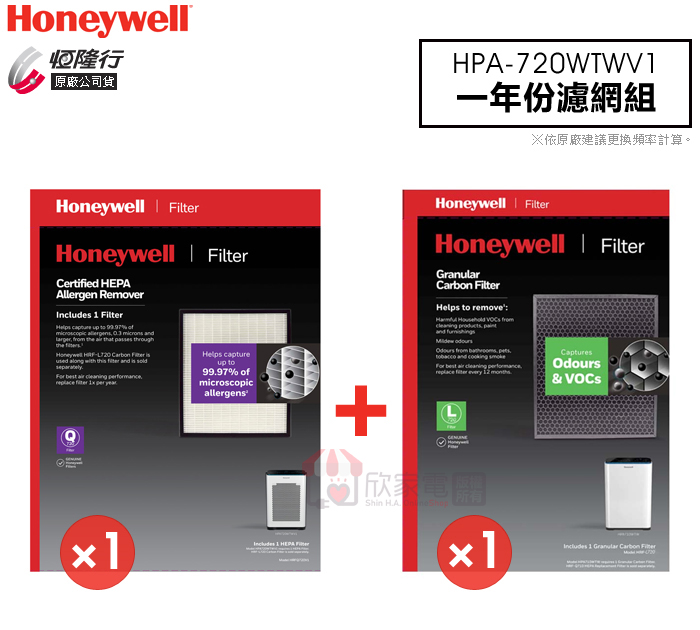Honeywell HPA720WTWV1【一年份】原廠濾網組