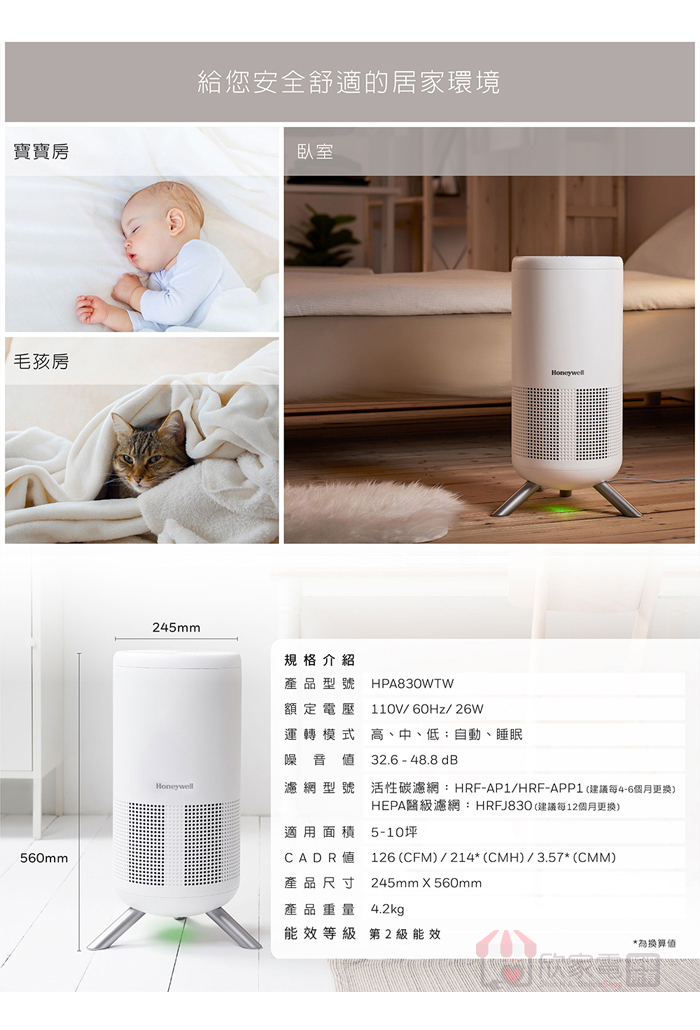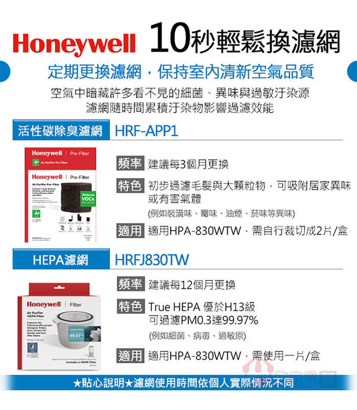 HEPA醫級濾網:HRF-J830 (建議每12個月更換)