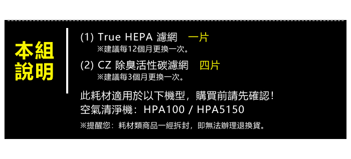 適用機型:Honeywell 空氣清淨機 HPA-100、HPA-5150