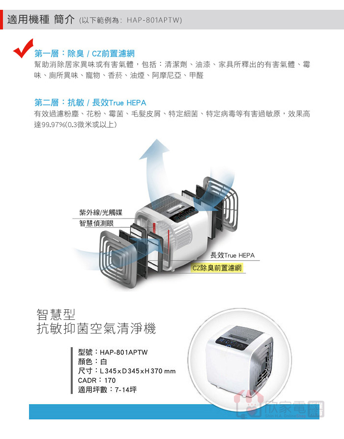 適用機型:HAP-801WTW、HAP-802WTW