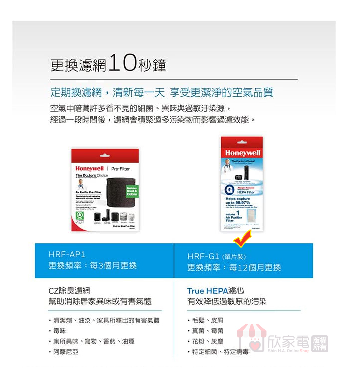 Honeywell 原廠 True HEPA濾網(1入)
