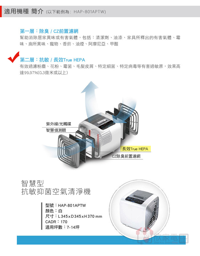 適用機型:HAP-801WTW、HAP-802WTW、HPA-162WTW、HHT-155