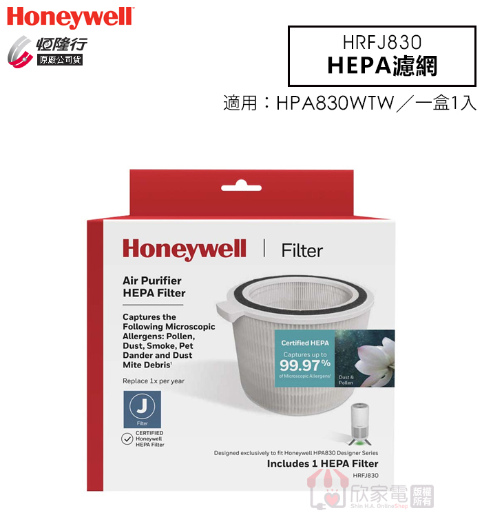 Honeywell 原廠 HEPA濾網【一盒1入,適用HPA830WTW】