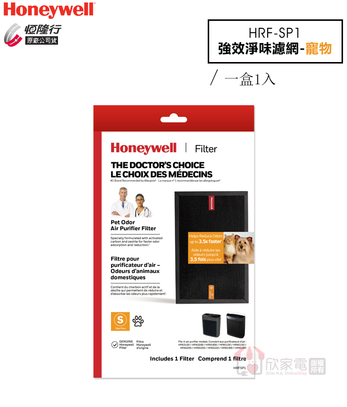 Honeywell 強效淨味濾網-寵物 (一盒1入)
