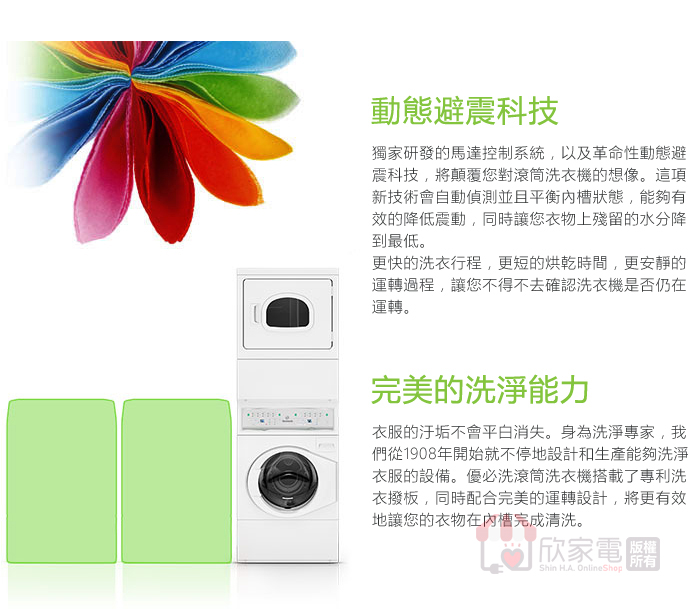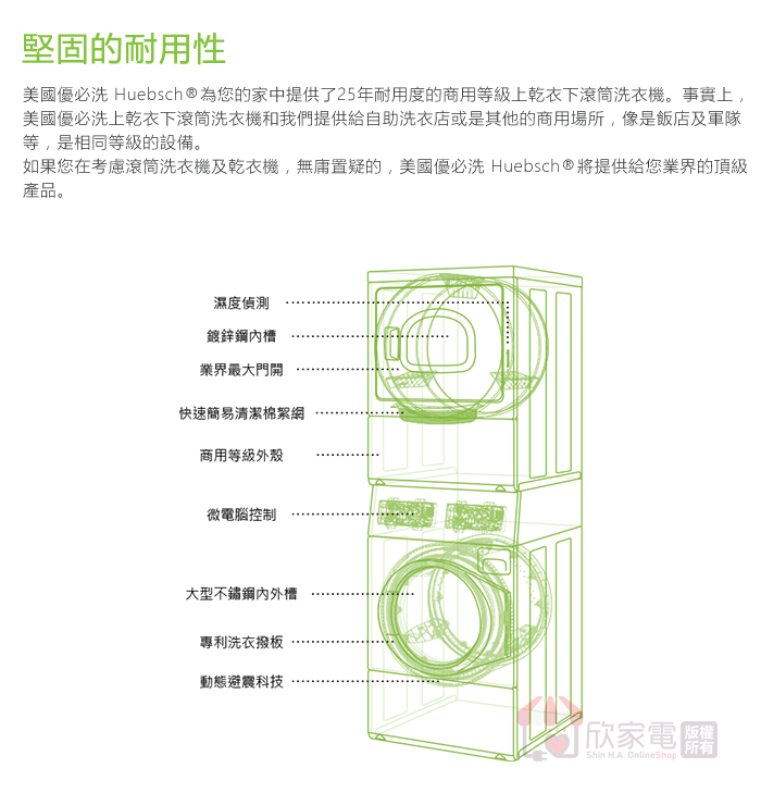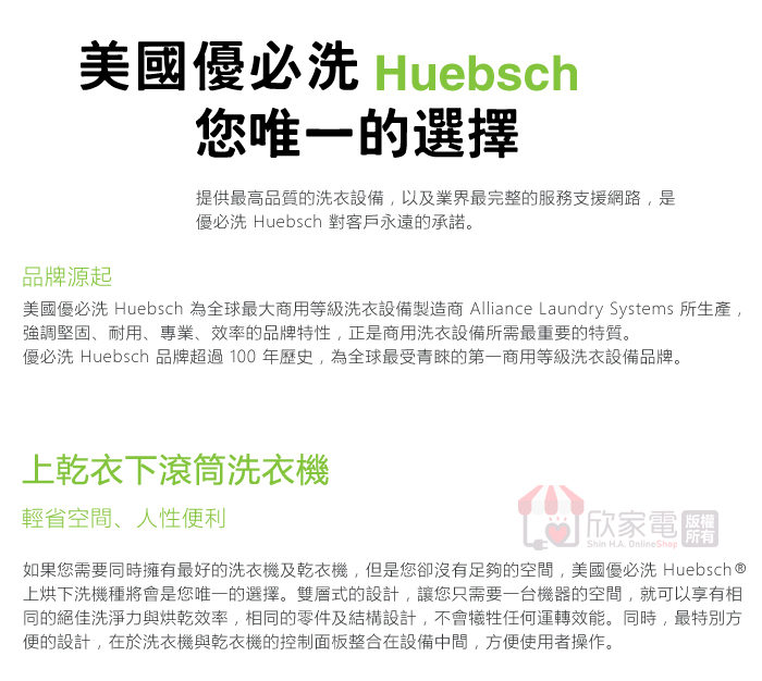 Huebsch 優必洗 雙層式上乾衣下滾筒洗衣機-電力型