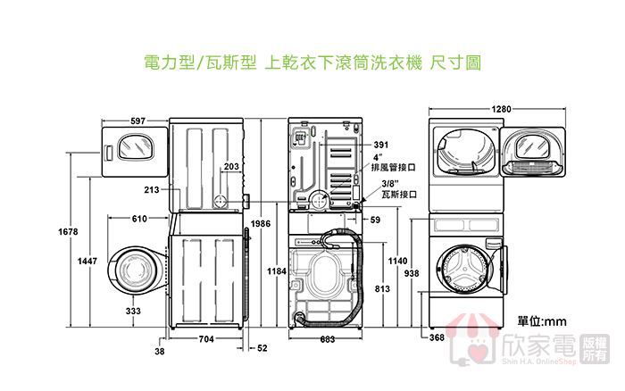 外觀尺寸(mm):寬683 x 深704 x 高1986