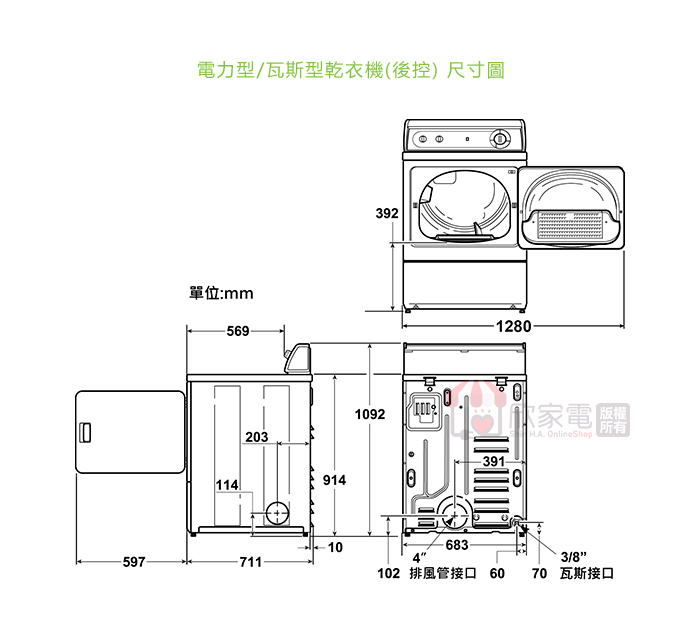外觀尺寸(mm):寬683 x 深711 x 高1092