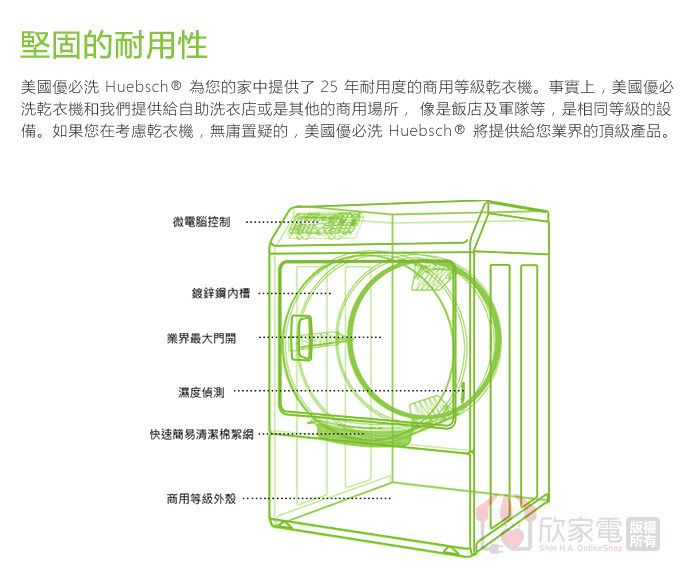 Huebsch 優必洗 15KG 7行程滾筒式乾衣機-瓦斯型