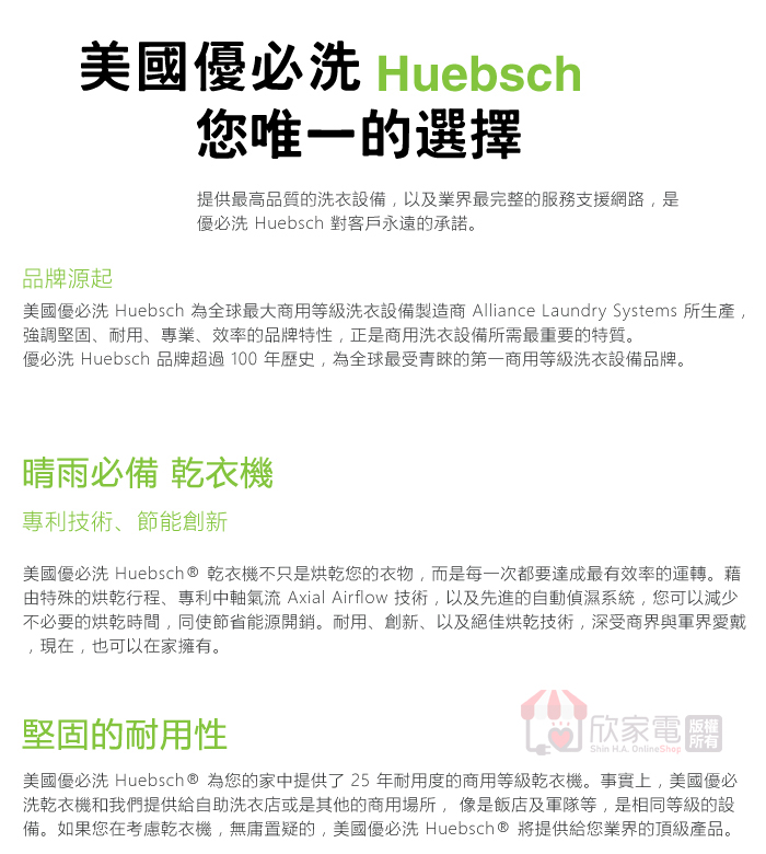 Huebsch 優必洗 15KG 7行程直立式乾衣機-瓦斯型