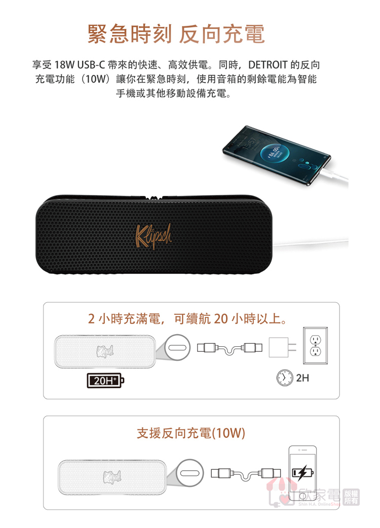 電池續航力:20+ 小時(充電時間 2 小時)