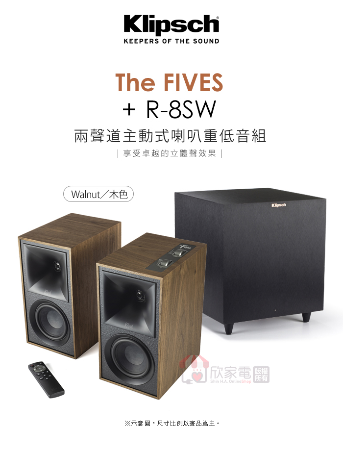 美國 Klipsch 兩聲道主動式喇叭-木色