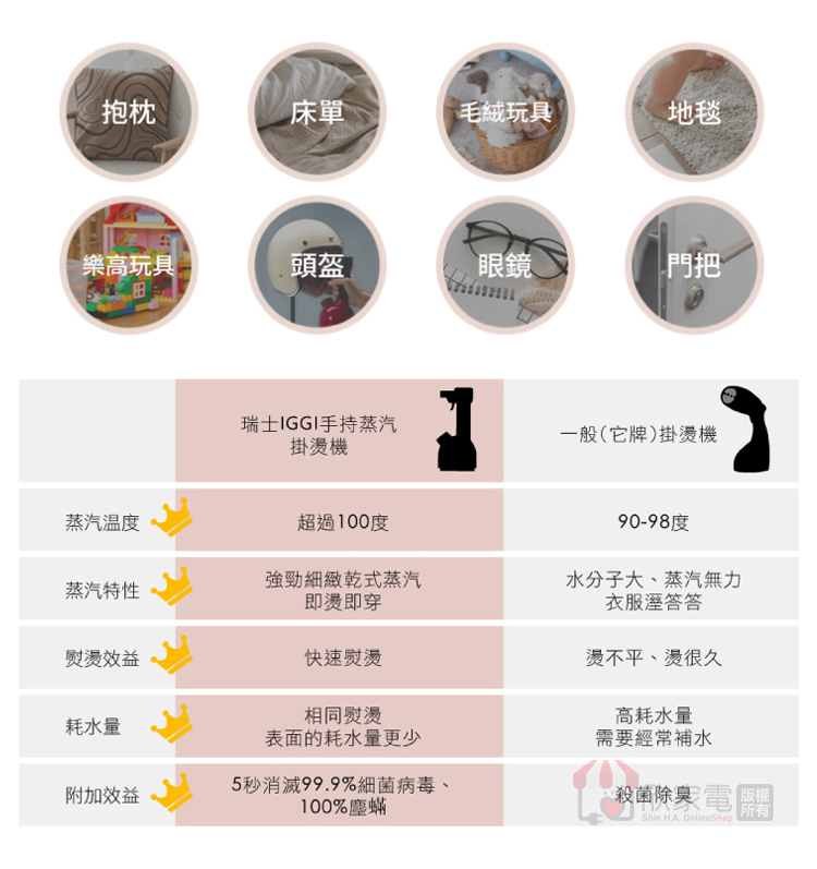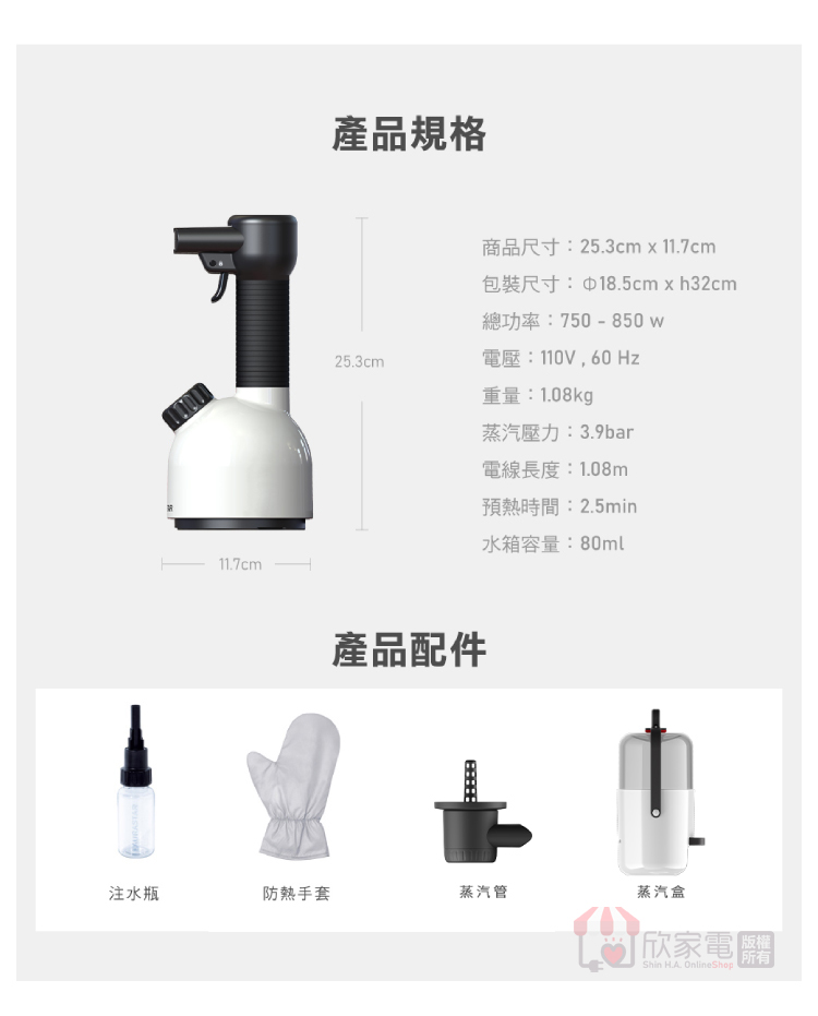 商品內含:IGGI白、蒸汽盒、蒸汽管、防熱手套、注水瓶