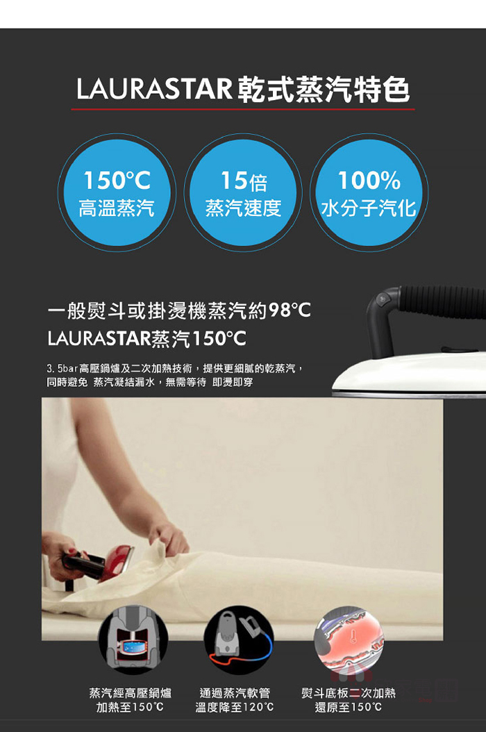 瑞士 LAURASTAR 手提式三合一高壓蒸汽熨斗 -黑色