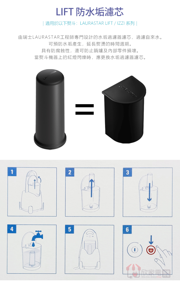 瑞士 LAURASTAR LIFT/IZZI 防水垢濾芯三入組