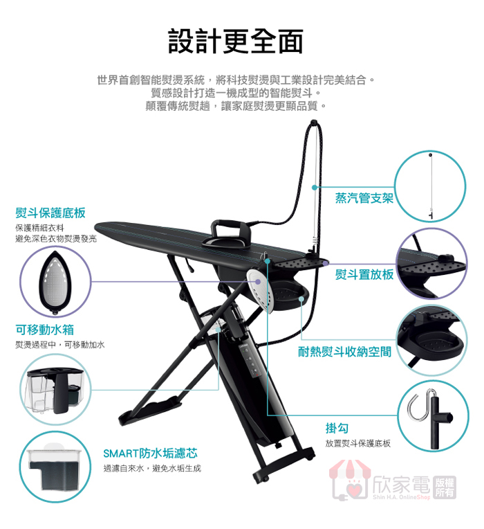 配件:水箱、防護底板、專業燙版套、水箱、水箱大小蓋、濾料盒、軟水濾料、鍋爐排水盒、防護底板掛勾、蒸汽管支架