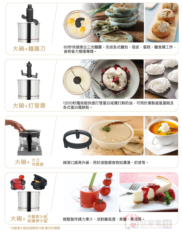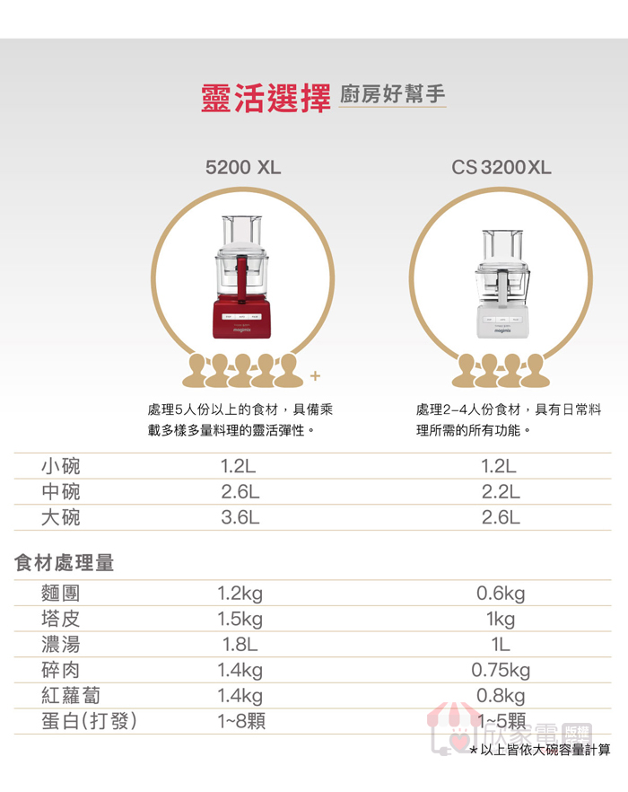 容量建議:麵團 0.6kg/塔皮 1kg/濃湯 1L/碎肉 0.75kg/紅蘿蔔 0.8kg/蛋白(打發) 1-5顆