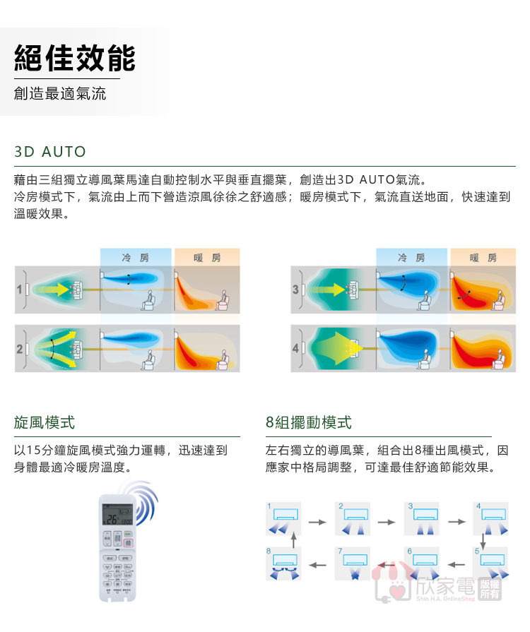 風量:冷風 22.8 m3/min,暖風 22.0 m3/min