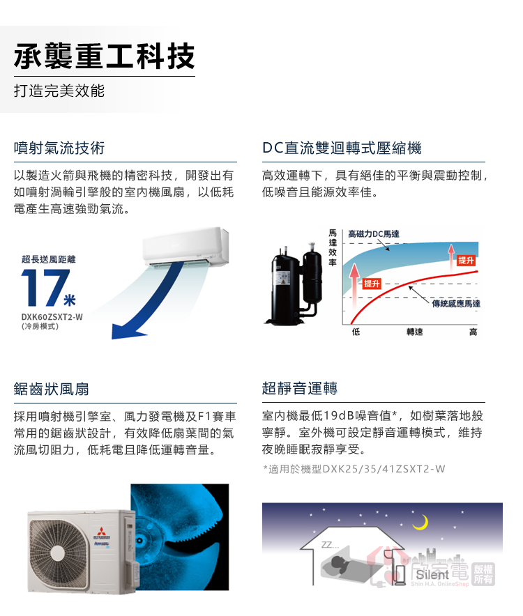 噪音值:冷房 44 dB(A),暖房 45 dB(A)