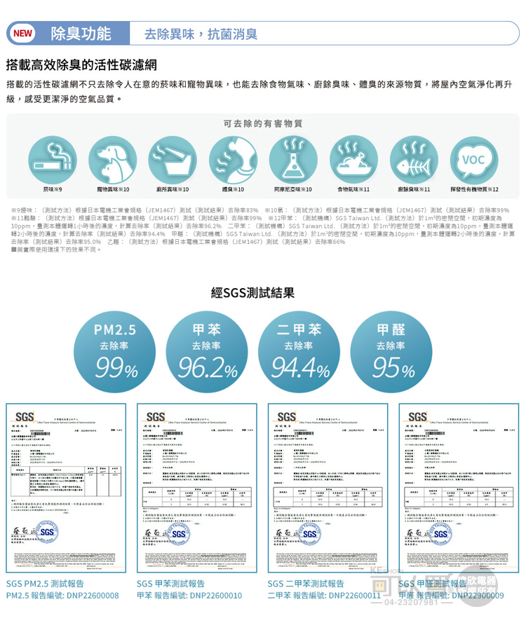 —異味、PM2.5、PM1.0:2階段 (GREEN/RED)