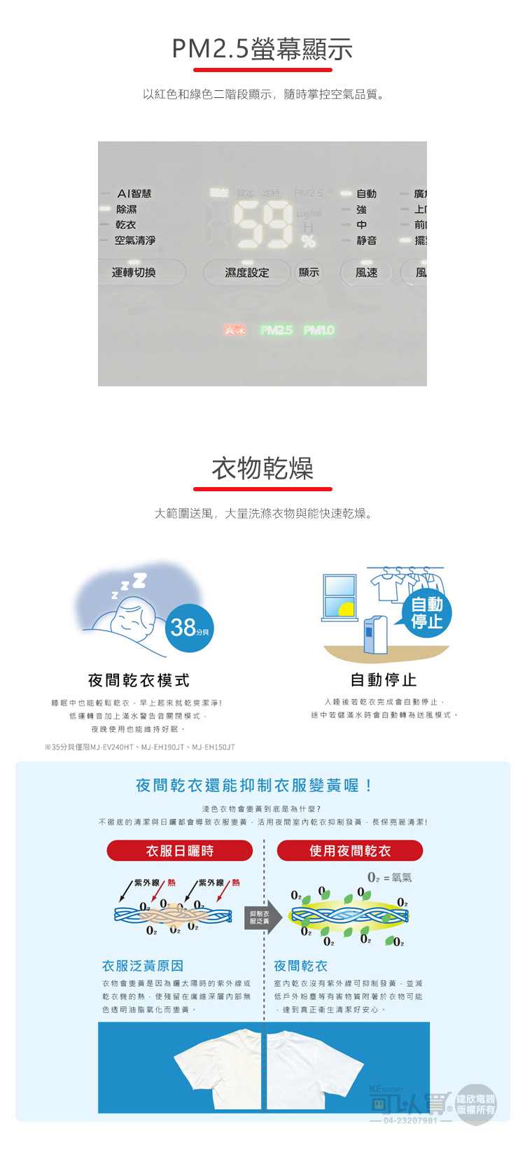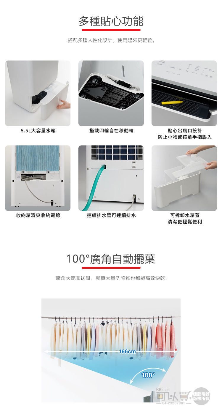 —自動擺葉選擇(除濕/空氣清淨/乾衣):上向/前向/廣角/停止