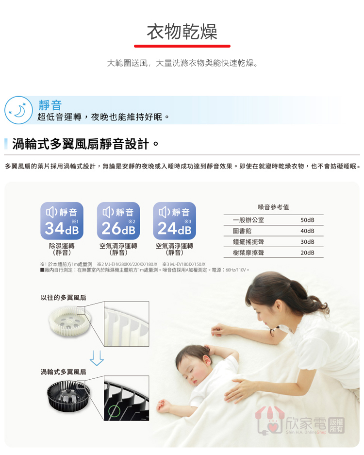 *2 廠內自行測定:在無響室內於除濕機主體前方1m處量測。噪音值採用A加權測定。電源:60Hz/110V。