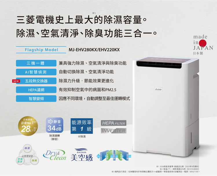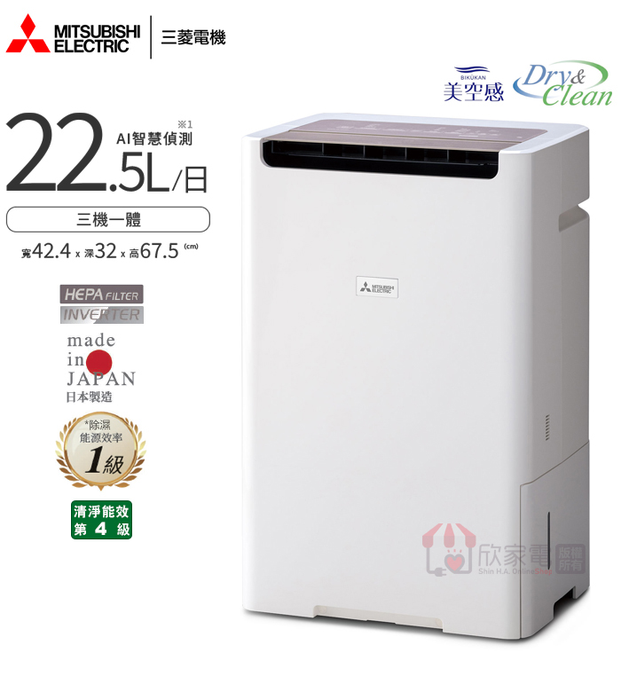 MITSUBISHI 三菱 日本原裝 22.5L 變頻AI大容量空氣清淨除濕機