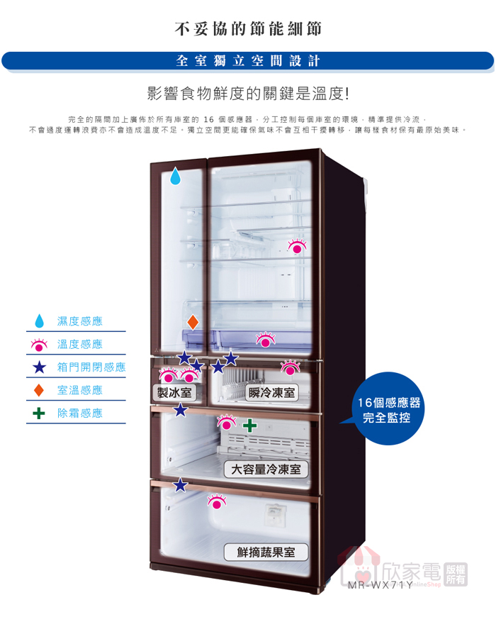 清新潔淨濾網、室別自動ECO偵側(ECO節能模式)、節能監視器、觸控門板、自動關門、全室開門警鈴