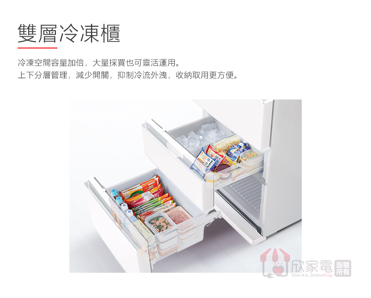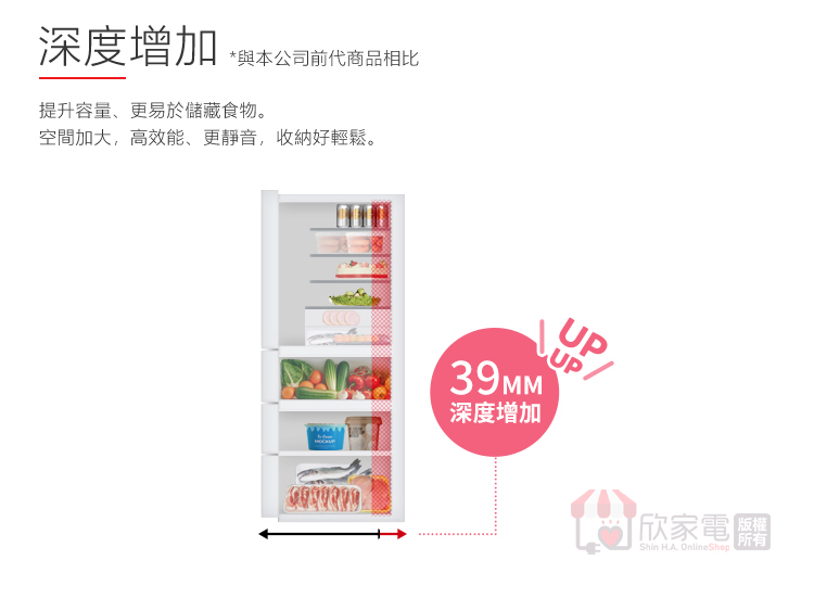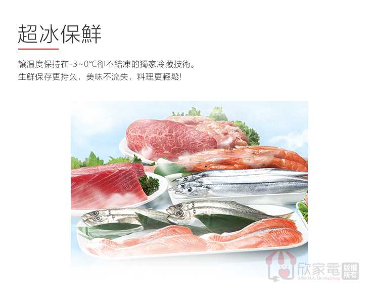 超冰保鮮、滑動保鮮室、強化玻璃層架、伸縮層架、蛋架、LED照明燈、門邊置物架