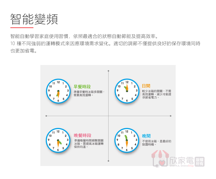 立體冷流、無須除霜、無氟氯碳化合物、清新潔淨濾網、智能變頻、開門警鈴